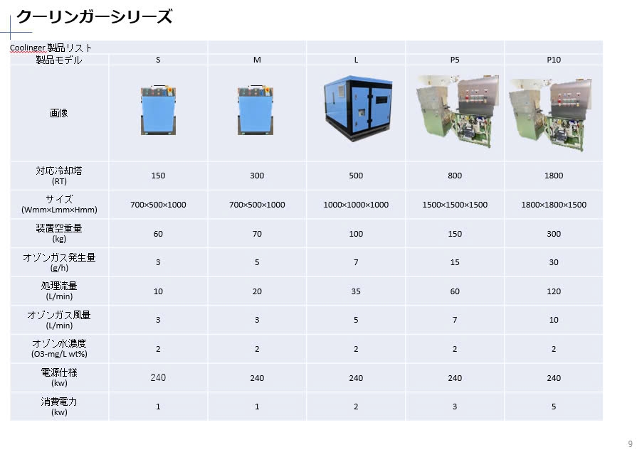 ※すべてのモデルでオゾン水濃度は2mg/L。特注品の製作も可能です。